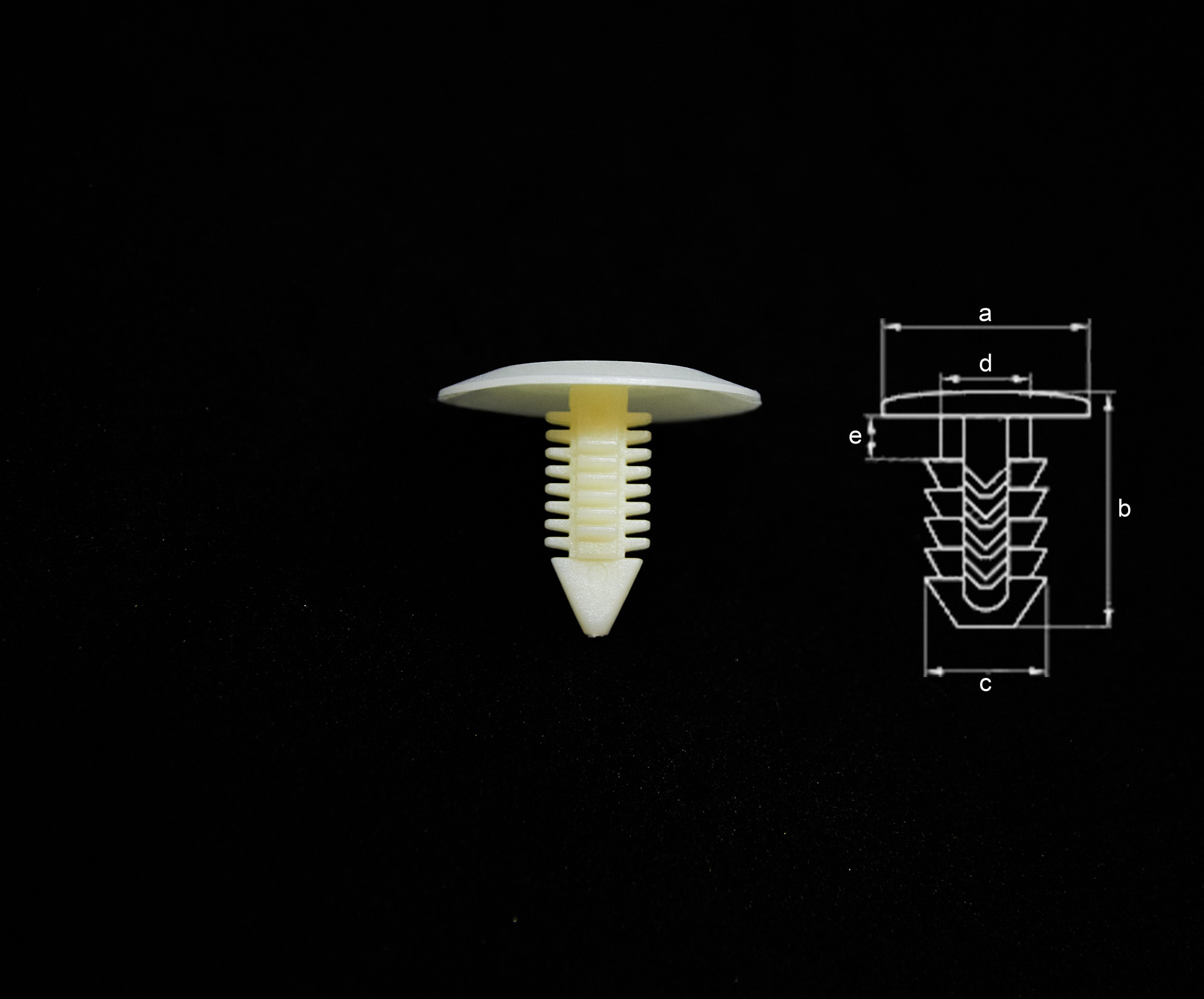 a - 24mm, b - 20mm, c - 8mm, d - 4mm, e - 2mm