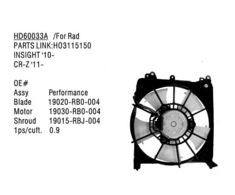 HONDA CR-Z 10 - 16 WENTYLATOR 19030RB0004 - DG-CARS | DG-CARS