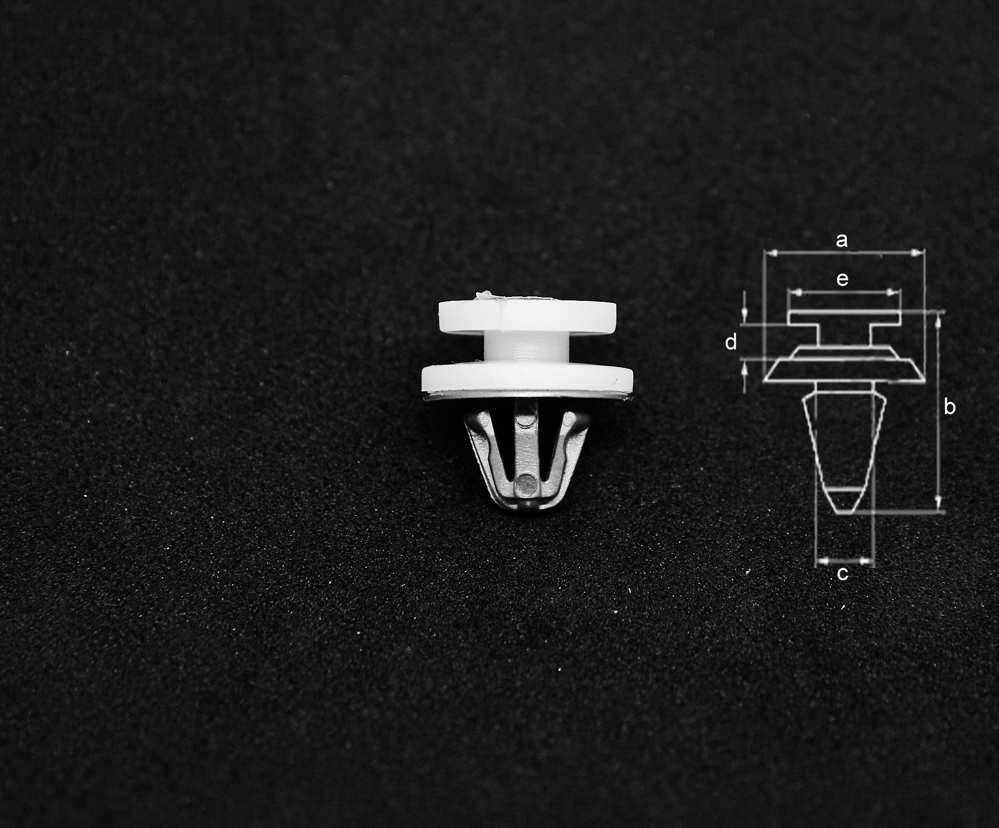 a - 15mm, b - 15mm, c - 10mm, d - 2mm, e - 12mm